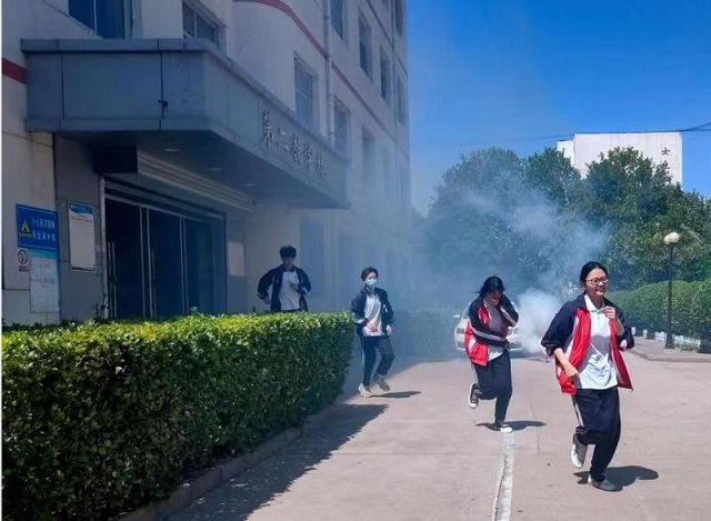 10:10演练活动正式开始。学管老师立即组织人员,迅速进入紧急疏散状态,按照逃生演练方案设定的逃生路线,迅速组织学生从教学楼撤离到操场,整个消防演练活动安全有序、规范高效,大家临危不乱,逃生时没有发生拥挤、踩踏和碰伤事故。