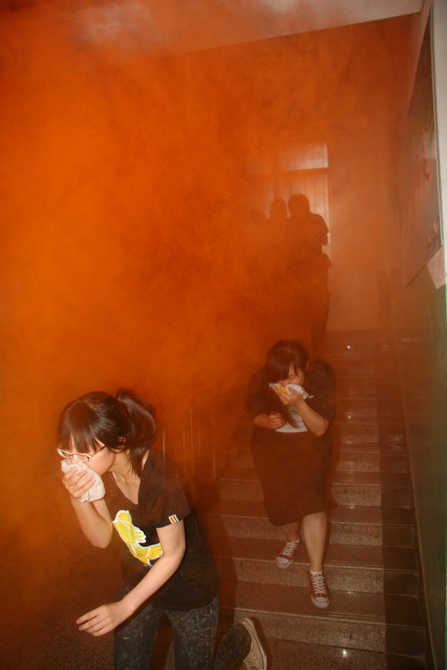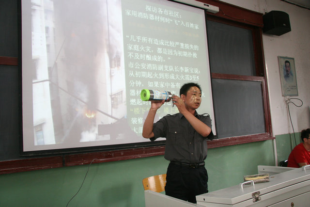 在保卫科、学生处以及各系的组织下,近200名同学在听取了消防知识讲座和观看了视频录像后,进行了教室、公寓楼安全逃生消防应急演练活动。最后,在乔教官的示范下,同学们掌握了科学使用干粉灭火器进行灭火的要领。在演练过程中,同学们能按照要求认真对待,疏散迅速、有序、科学,参演老师组织到位,保障有力,保证了这次演练的成功。