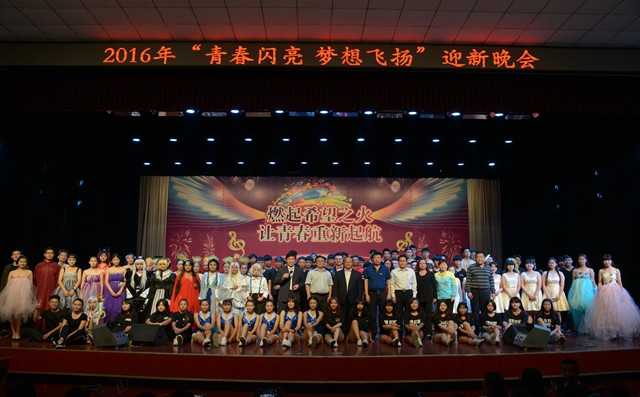 在硕果累累的金秋时节,在伟大祖国67年华诞前夕,我校于9月28日晚7时,在文体活动中心隆重举行了2016级新生开学典礼,并为全体新同学奉上了一场以 “青春闪亮 梦想飞扬”为主题的迎新晚会。学校领导及办公室、教务处、学生处、各专业系主要负责人共同出席了活动。