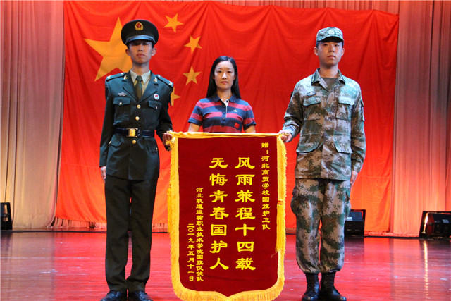 我校国旗护卫队自2005年成立至今,队员们出色地完成了校运会、迎新晚会、五四表彰晚会及每周一的升旗仪式等各项任务。他们恪尽职守,勇于奉献,与国旗一起谱写了一曲青春赞歌。校团委卢倩老师在致辞时,对兄弟院校国护队的到来表示欢迎,对我校国护队老队员的工作给予了充分肯定,同时对新队员提出了期望,指出此次换届仪式不仅是国旗的交接、职责的传递,更是爱国主义精神的传承。