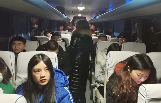 已经到了严冬,同学们有时披星戴月出发,有时会有长时间等待,但是这影响不了同学们的热情,早早的就等在学校门口,随时准备出发。