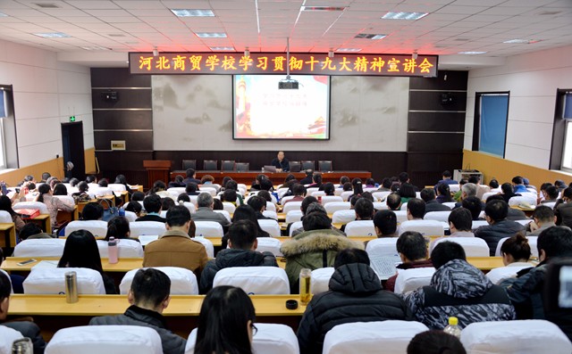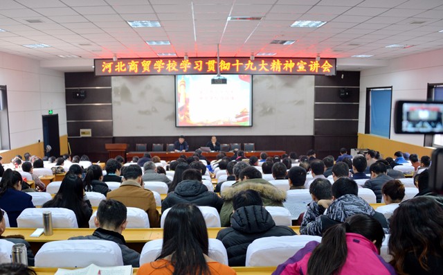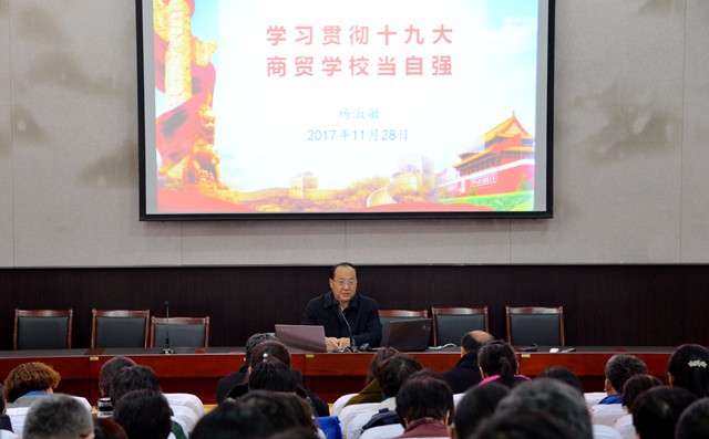 11月28日下午,校长、校党委书记杨淑敏在报告厅向全体教工讲了题为《学习贯彻十九大 商贸学校当自强》的主题党课,宣讲十九大精神。