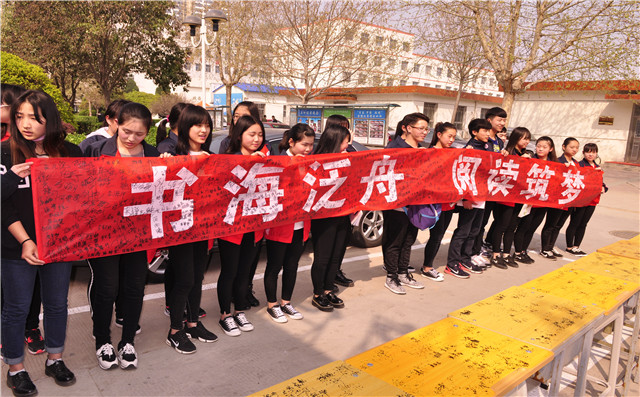 读书社负责人李仁泽同学向全体学生发出读书倡议。会后在场领导、老师和同学们进行了“书海泛舟 阅读筑梦”主题横幅签名。